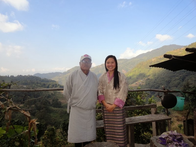 I’ve hit a new low. Or perhaps it’s a new high: in bed before 7 PM. Sitting by the fire, or more accurately, the wood-burning stove used for cooking, makes me sleepy. Because it is winter in Bhutan and we are nestled in a valley, the sun sets early and rises late. Without heat, there is little incentive to stay awake when I know I can curl up in bed under multiple covers. I am currently living with a farming family of Nepali descent in a small village near the town of Damphu in Tsirang Dzongkag (district). Similar to the neighbors, who are few and far between, the family’s house is perched on a grassy hillside overlooking paddy terraces (FYI, paddy is rice before it is husked). The view from the house looks a bit like the hill station of Darjeeling in India, except the landscape is much, much less populated. I remember my friend Raj saying that Darjeeling felt like heaven because the lights from the buildings at night resembled stars and you couldn’t tell where the hillside ended and the sky began. Here, the houses are so few that the actual stars are much brighter. Like most structures in Bhutan, there is no heating here, so I am sleeping with a sleeping bag and four blankets, huddled with long underwear and a jacket. It’s more pleasant to not bathe because of how cold it is after the bucket shower. The food I’ve been having at this rural homestay is the best I’ve had in Bhutan so far, without a doubt. I tried wild boar, which is definitely some of the best pork I’ve ever had. It’s a shame that Buddhists don’t want to kill animals (hence no hunting) because the wild boar inflicts so much damage to their crops (nearly 25% of their paddy was lost last season). If hunting were morally permitted, they could eating delicious pork daily and ameliorate the wild animal problem. And there is something about eating fresh vegetables that you harvested earlier in the day or drinking milk that you milked from the cow only a few hours before. In fact, tonight is the second evening in a row I was able to milk the cow, and I think I am slowly improving. While working, I heard a chain saw and casually saw the uncle chopping down some trees for firewood, dressed in his plaid flannel, really looking like quite a lumberjack. The pace of life is much slower here and if I had to imagine a nearly complete self-sufficient existence, this would probably be it. In fact, I have found Bhutan to be a bit confusing and disorienting. Within less than a week, I seem to have boarded a time machine twice and gone both forward and backward. For instance, being in the capital city of Thimphu felt more like home than anything in the last 6 months: a proper shower with running hot water, eating pasta and tomato sauce for dinner, watching a Pixar animated film on a flat screen TV, going to a bar to have a beer and listen to acoustic covers of American bands, etc. Yet I quickly found myself in a truck going 6 hours south, mentally preparing for a short stay with a farming family. During the drive, we made it to one beautiful viewpoint known as Dochula Pass.